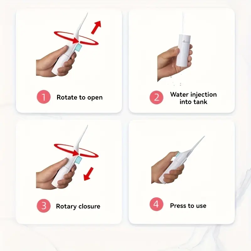টেকসই, হাই-কোয়ালিটি, এবং ব্যাটারি ছাড়া কর্ডলেস লিকুইড ফ্লসার, যেকোনো জায়গায় এবং যেকোনো সময় আপনি চাইলে বহন করতে পারবেন।
